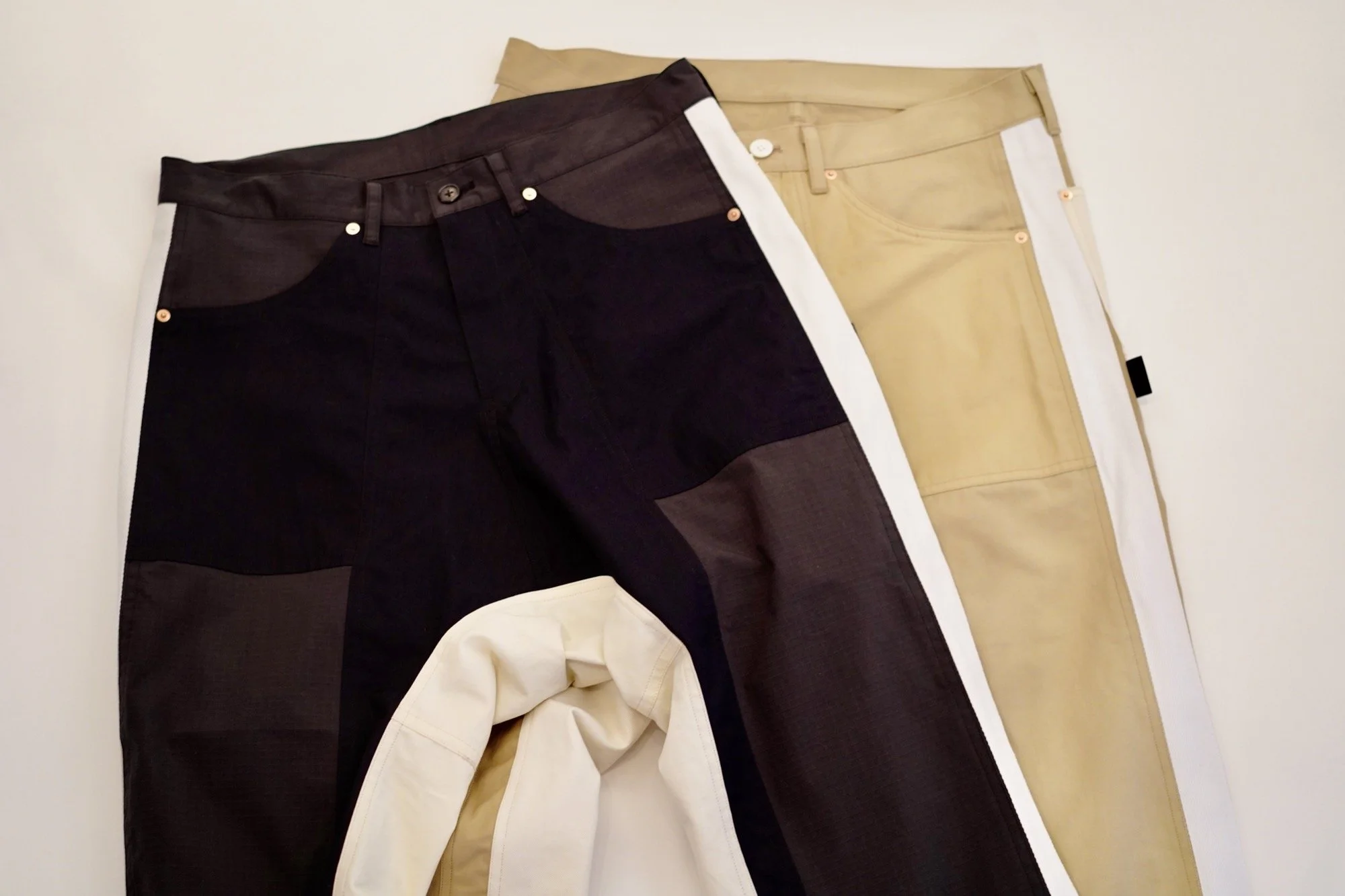 たとえば1940年代のU.S ARMYチノの感じを、ぼくの好きな@CORDURA糸とコラボさせてあったり…